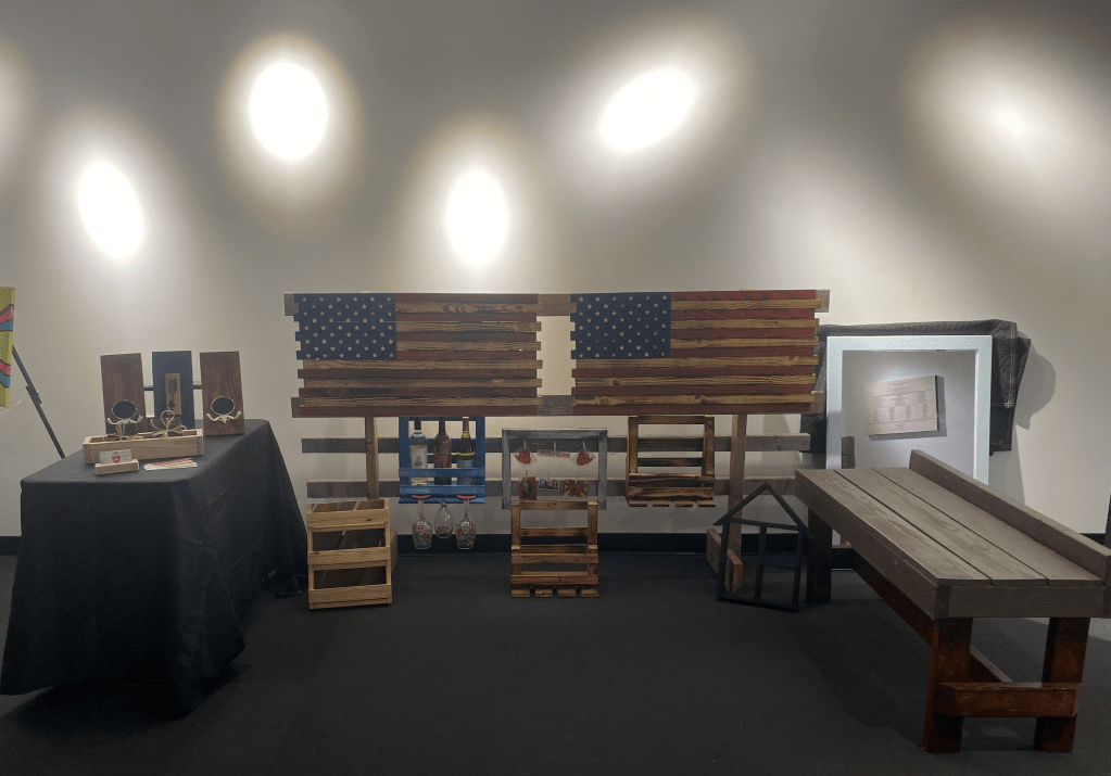 One of the best parts of the exhibition was sharing the experience with my husband, who debuted his Custom Upcycled Woodwork. His unique and creative pieces were a beautiful complement to my artwork, and we were able to showcase our combined passion for art and design.